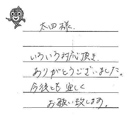 笑顔で親切な対応がとても安心できました。太田さんに任せてよかったです。